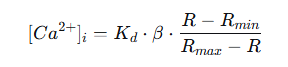 三、从比率(R)到钙浓度([Ca²⁺]ᵢ)的定量转换 1.计算公式: 将比率值 R 转换为绝对钙浓度需使用 Grynkiewicz 公式: